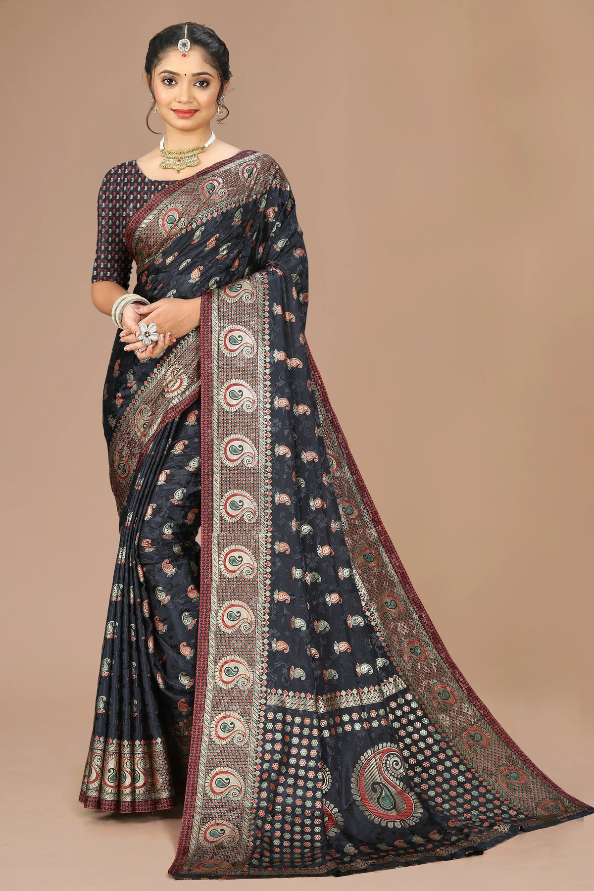 A luxurious handcrafted saree with- Slight variations that reflect true hand craftsmanship